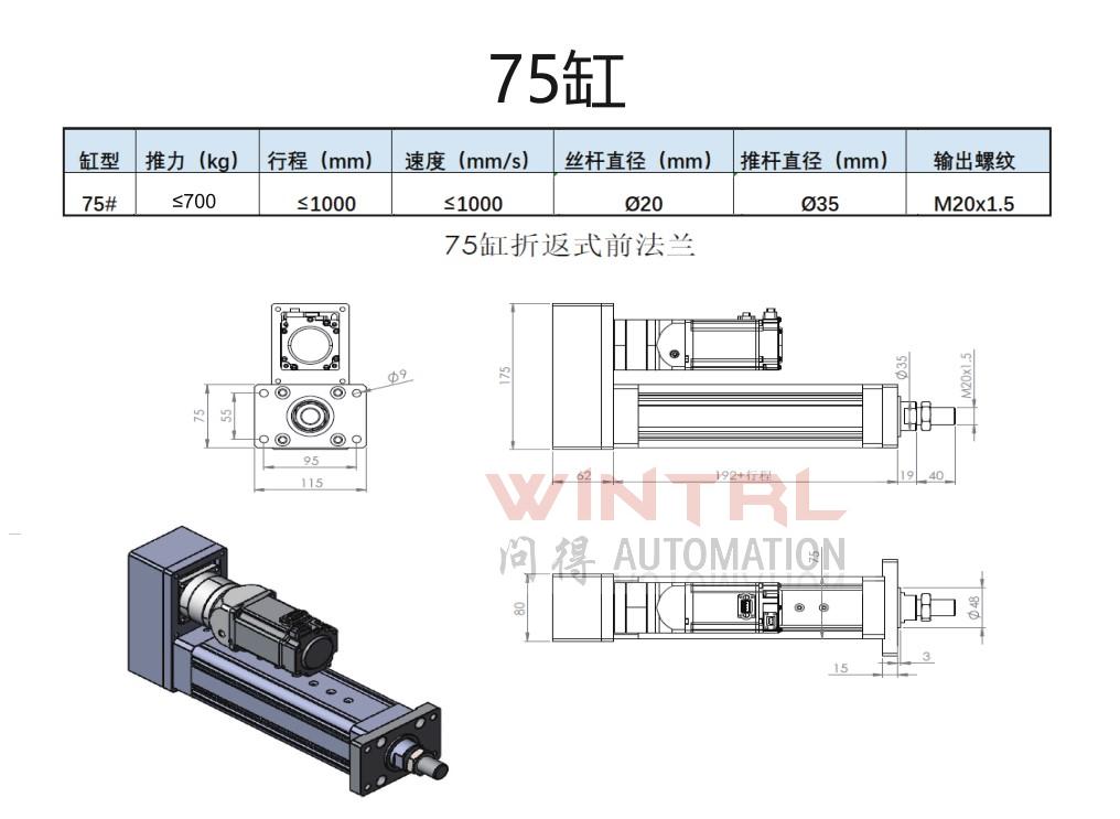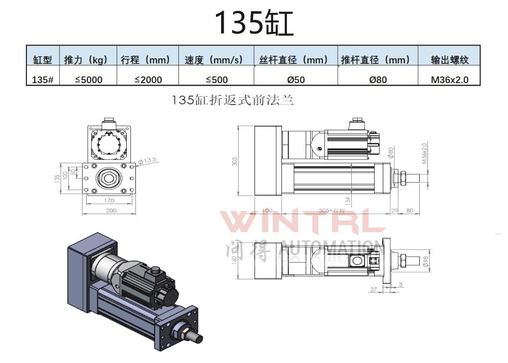 190缸? 推力小于20000kg? 行程小于2500mm 電機安裝方式(折返、直連)電缸安裝方式(前法蘭、后法蘭、腳座、耳軸)接受非標定制 |