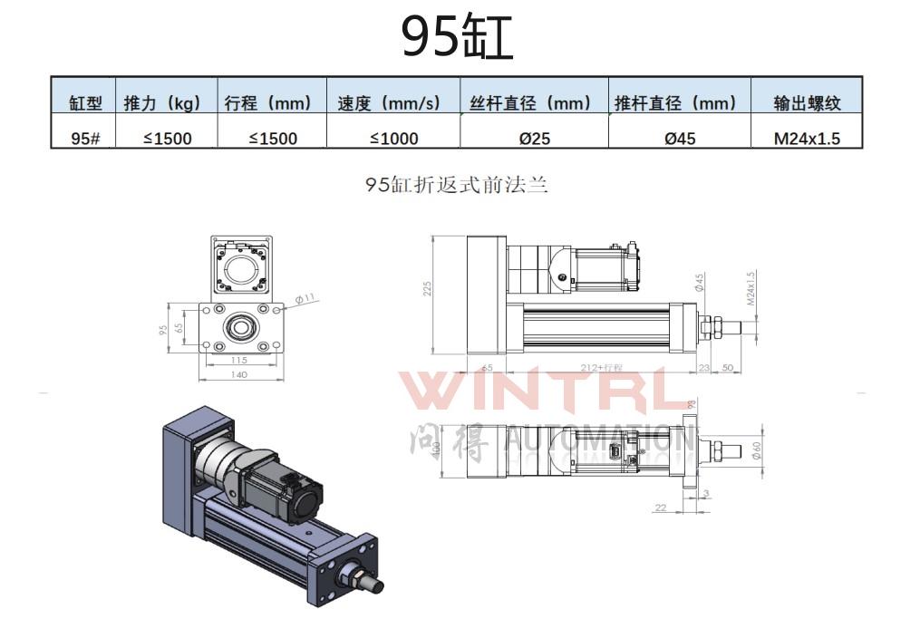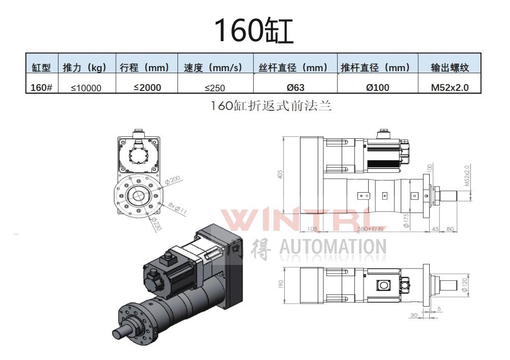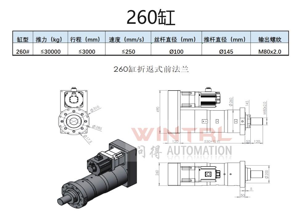 260缸? 推力小于30000kg? 行程小于3000mm 電機安裝方式(折返、直連)電缸安裝方式(前法蘭、后法蘭、腳座、耳軸)接受非標定制 |